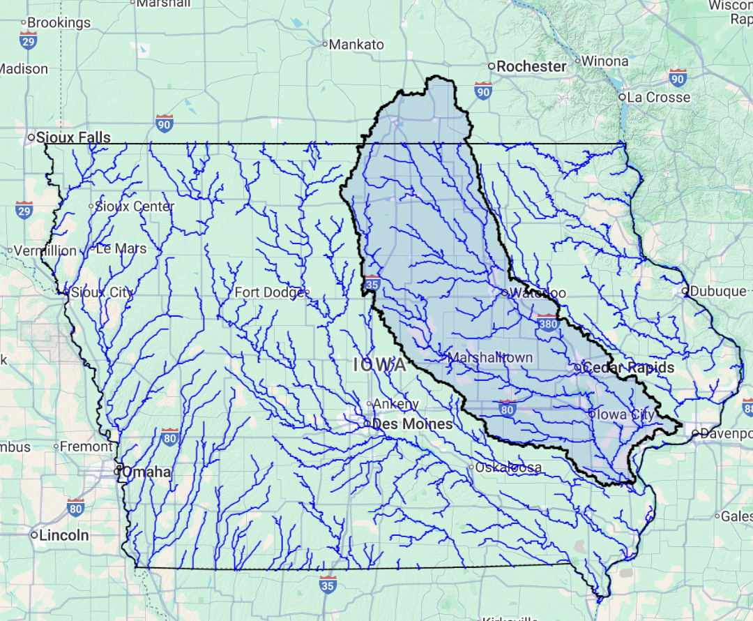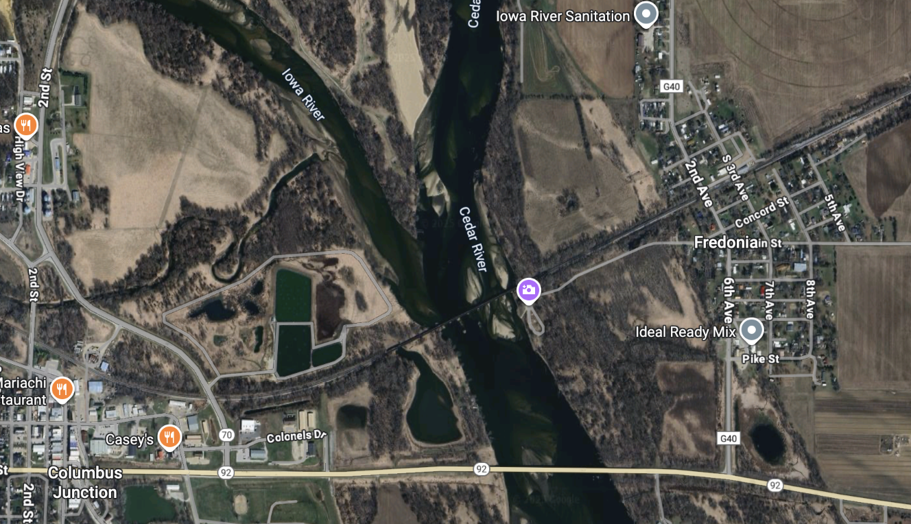I’ve been looking at nitrate and weather data for the Iowa River at its outlet at Wapello, Iowa. This is Iowa’s 2nd largest interior river basin and is drained by two major rivers, the Cedar and the Iowa. The Cedar is actually the bigger river at the confluence but that last section of combined flow retains the name of the smaller branch.
