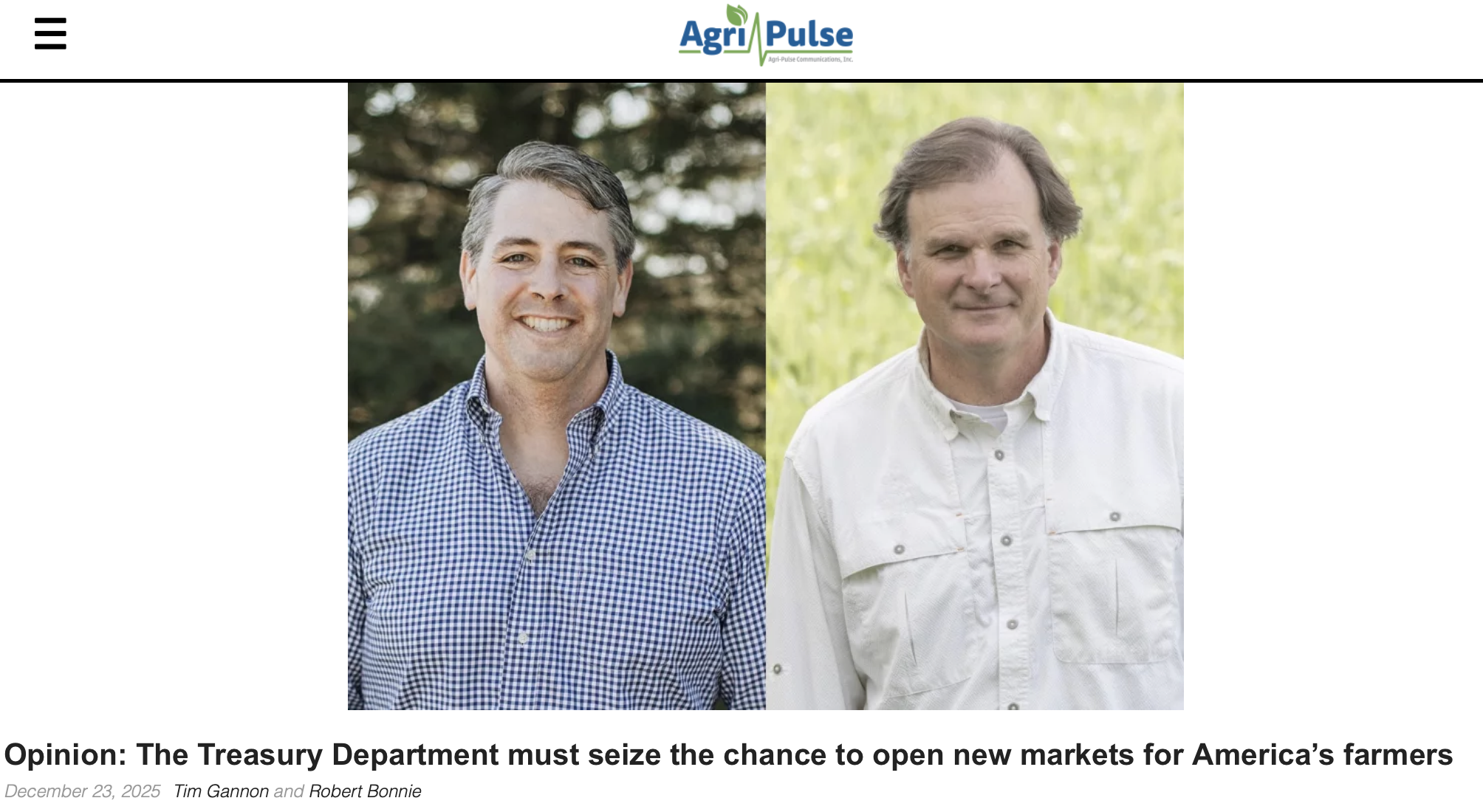 Tom Vilsack acolytes Tim Gannon and Robert Bonnie recently posted an essay on the online ag news outlet Agri-Pulse titled The Treasury Department must seize the chance to open new markets for America’s farmers. Gannon ran for Iowa Secretary of Agriculture in 2018 against Mike Naig. Bonnie is a Harvard and Duke University-trained policy wonk with multiple tenures at USDA (Obama and Biden) after having worked at the Ag-friendly NGO Environmental Defense Fund for 14 years. He’s now a distinguished fellow with the University of California-Berkeley’s Stone Center for Environmental Stewardship.