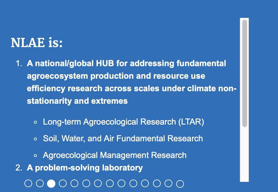 There are 15 ‘National’ ARS laboratories and one of them is in Ames, Iowa. Back in the day, it was called the National Soil Tilth Laboratory until the then director, Dr. Jerry Hatfield, rebranded it as the National Laboratory for Agriculture and the Environment (NLAE). I knew Jerry (along with many other NLAE scientists) and was coauthor on a journal paper with him. NLAE scientists often work closely with ISU faculty, and some had dual appointments when I was still working. Not sure now. The staff page on the website lists only one person—the current director, Athanasios Papanicolaou.