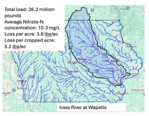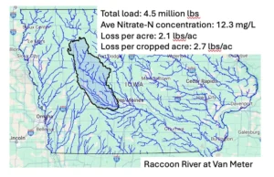 One more watershed: South Fork of the Iowa River at New Providence. Receiving water from mainly Hamilton and Hardin Counties, South Fork was ‘voluntary conservation’ before voluntary conservation was cool. The South Fork Watershed Alliance was formed in 1999. Since then public dollars spent on that watershed have helped support a virtual army of university, government, and NGO scientists and conservationists and produced about 274 citable publications on Google Scholar, and I’m an author on a couple of them.