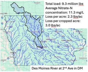 Iowa’s approach to this problem has been great for people like me—job, publications, and the opportunity to study nature’s systems. It’s also been great for farmers and agribusiness because they haven’t gotten pinched, and have been allowed to merrily go on with their polluting ways, this going back to 1992 when Des Moines installed nitrate removal treatment.